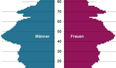 Kann man da noch von Alterspyramide sprechen? Die Ausbauchung in der Mitte, das sind die 1960er Jahrgänge. Quelle: Statistisches Bundesamt